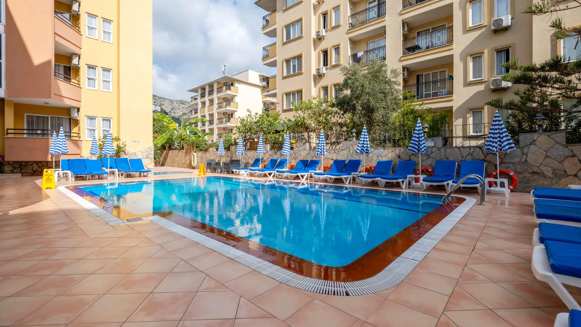 Stedet byder på få men fine faciliteter, såsom skøn solterrasse med en indbydende swimmingpool, separat børnepool, poolbar og gratis Wi-Fi. Vi gør opmærksom på, at internettet i Tyrkiet har varierende dækning, og udfald kan forekomme. Der er mulighed for at leje en safetyboks i reception mod gebyr.