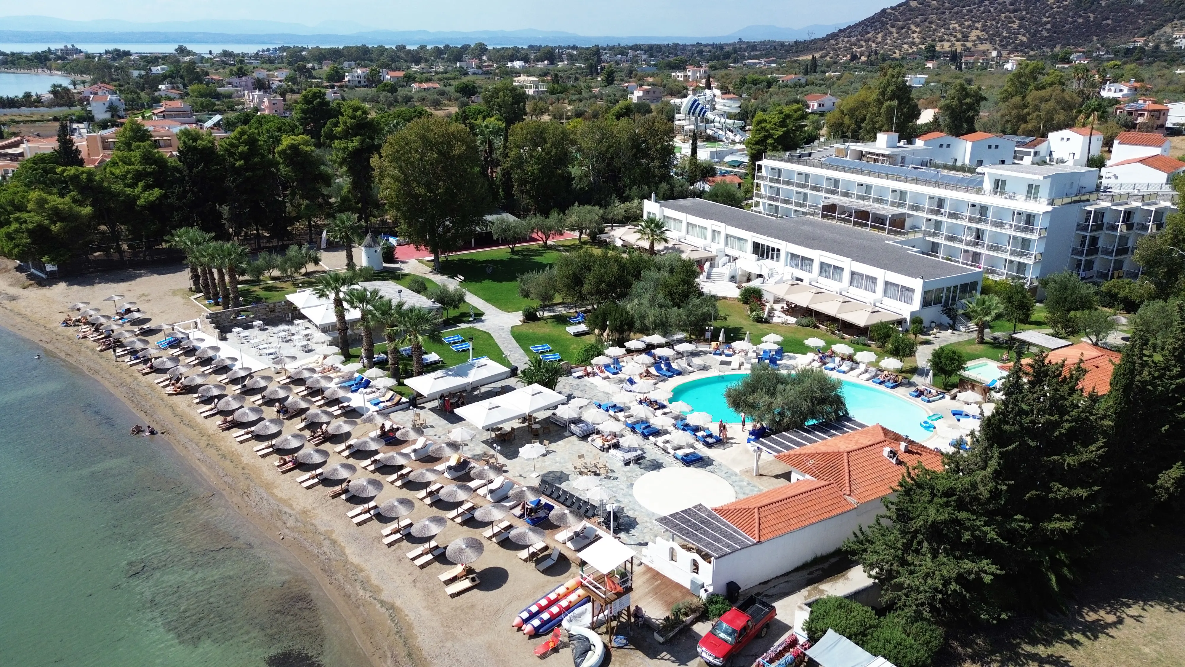 Hotellet ligger helt ned til stranden på Evia, og du kan gå 1,5 km på gode stier langs stranden ind til Eretria, som er en autentisk græsk by med et mindre udvalg af butikker og mange restauranter, der ligger helt ned til vandet. Ved Eretria ligger der også en arkæologisk udgravning med et flot amfiteater, der er ved at blive reetableret, og som er åbent for turister om sommeren. Der er ca. 25 km til Evias største by Chalkida, som byder på gode shoppingmuligheder og masser af restauranter. Det er muligt at komme til Chalkida med bus, og hvis du ønsker at leje en bil, er der gode parkeringsmuligheder på hotellet.