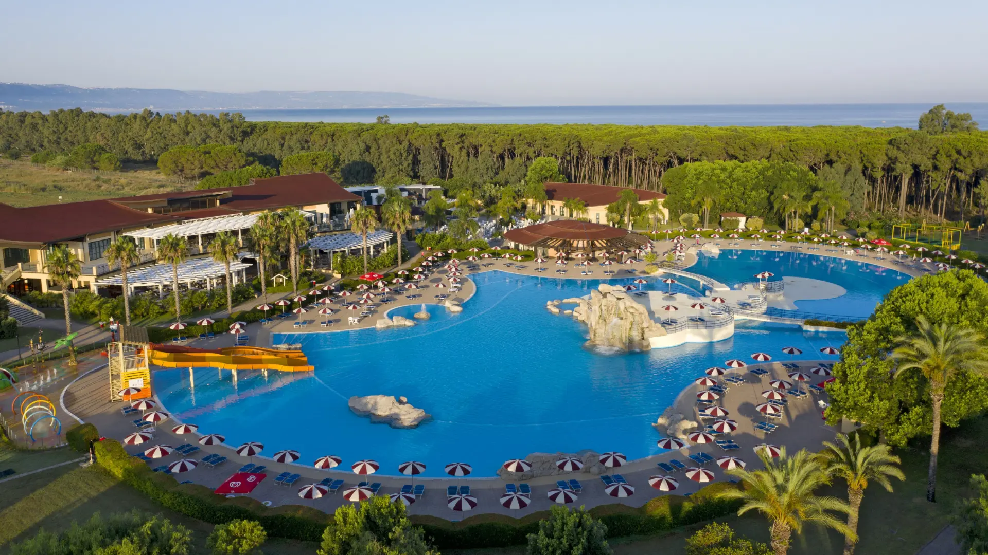 På Falkensteiner Club Funimation Garden Calabria finder du alt, hvad det aktive feriehjerte begærer. Den enorme pool med integreret børnepool og vandrutsjebaner er hotellets naturlige samlingssted. Her kan du nyde ferien i parasollens skygge, hente en kølig forfriskning i poolbaren, forsyne dig med pizza eller andre lækkerier fra snackbaren eller bare flyde rundt i poolen og nyde livet. Pool- og strandhåndklæder udlejes med gebyr (2 € pr. dag + 20 € depositum).