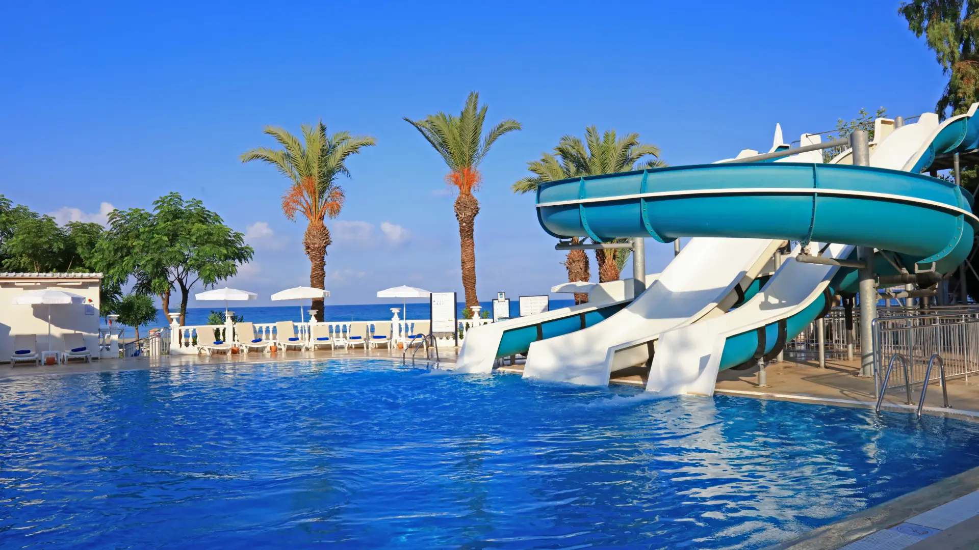 Ikke langt fra poolbaren finder du hotellets anden pool med 3 rutsjebaner. Her finder du ligeledes fitnessrum, spacenter og en overdækket børnepool til de allermindste. Hotellets sidste pool finder du i grønne omgivelser i et roligt hjørne af hotellet. Denne pool er relax-pool og forbeholdt voksne over 16 år.