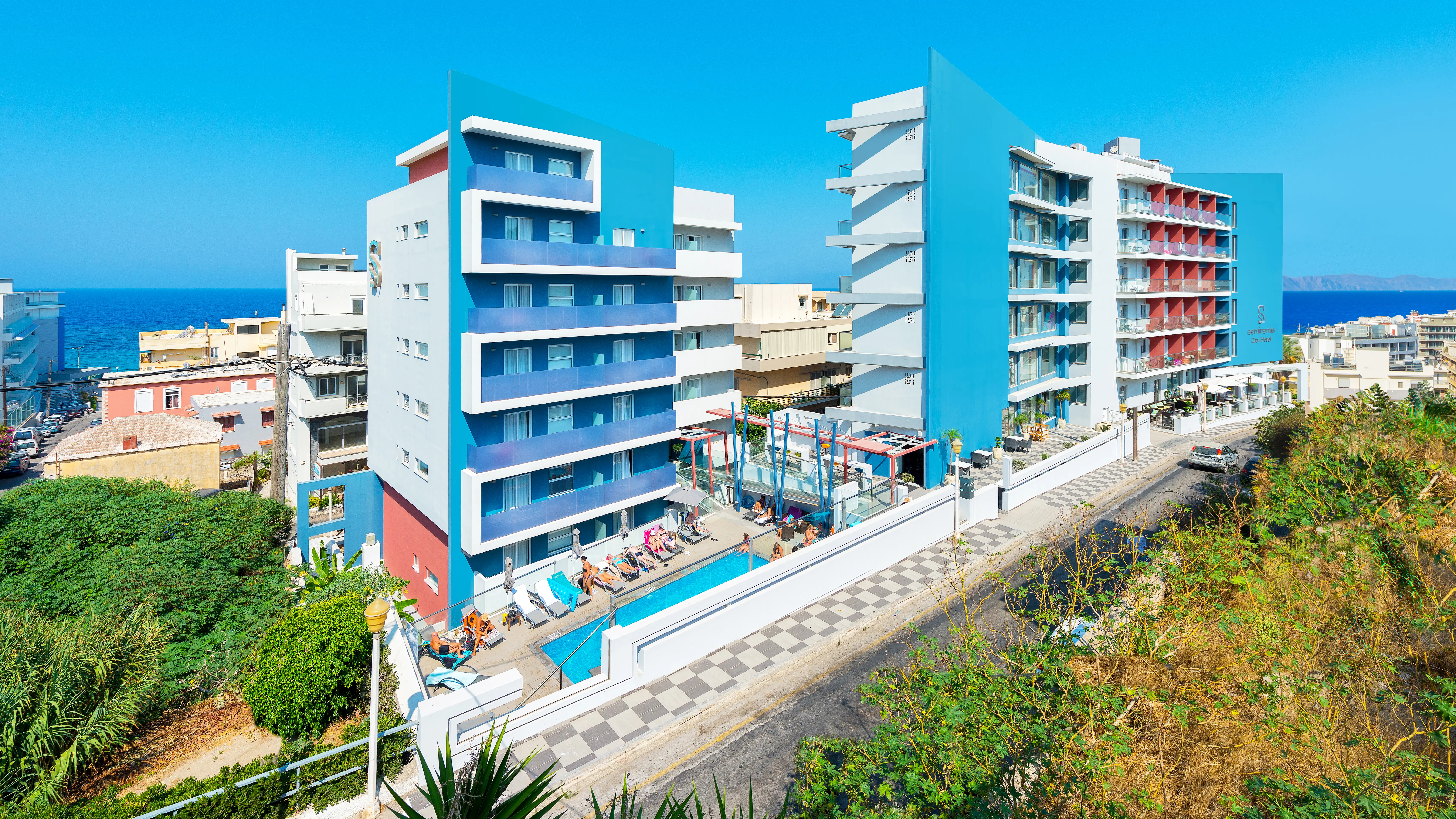 Semiramis er et moderne hotel med mange gode faciliteter. Der er gratis WiFi på hele hotellet, og vi gør opmærksom på, at internetforbindelsen i Grækenland kan have varierende dækning, og udfald kan forekomme. Der er live musik på hotellet én gang i ugen, og der er også et fint fitnesslokale, hvis du gerne vil holde formen ved lige under ferien. Det er også muligt at tilkøbe forskellige former for massagebehandlinger på hotellet. Du kan også leje en bil direkte på hotellet. Vi gør opmærksom på, at hotellet har seks etager, og der er kun elevator til femte etage.