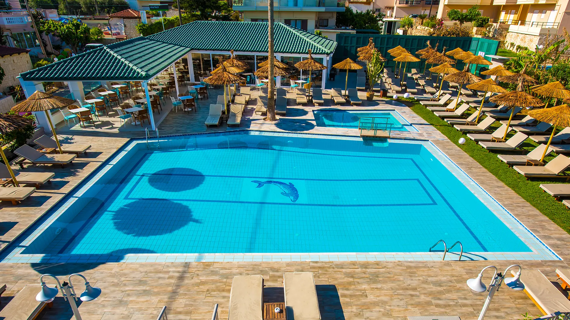 Hotellet byder på få, men rigtig fine faciliteter. Det naturlige samlingspunkt på hotellet er poolområdet, hvor du finder den hyggelig solterrasse med liggestole og parasoller til fri afbenyttelse samt swimmingpool. Her finder du også poolbaren, hvor de inkluderede drikkevarer og snacks kan nydes. Poolhåndklæder kan lånes gratis mod depositum. Der er desuden et lille udvalg af brætspil, bibliotek med internationale bøger samt TV lounge. Gratis WiFi på udvalgte fællesområder. Vi gør opmærksom på, at internetforbindelsen i Grækenland er varierende, og udfald kan forekomme.