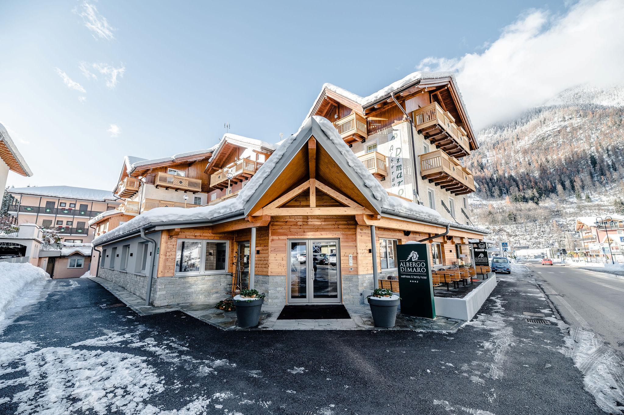 Hotel Dimaro Wellness & Family ligger i hjertet af Dimaro Folgarida i Italien. Dette charmerende hotel har en særlig historie: det startede som et gammelt bageri og voksede siden 1963 til et varmt og gæstfrit hotel midt i landsbyen. Fra denne centrale beliggenhed kan du nemt gå til skibussen, som holder ca. 50 meter væk og kører dig mod lifterne i Val di Sole. Dit ophold inkluderer morgenmad, med mulighed for at tilkøbe aftensmad for ekstra bekvemmelighed efter en dag i sneen. Indenfor føles hotellet hyggeligt og hjemligt med en klassisk alpestemning og komfortable værelser, hvor du kan slappe helt af efter en aktiv dag. Trædetaljer, varme farver og udsigt til bjergene skaber den typiske Trentino-stemning. Her bor du midt i landsbyen, med butikker og et minisupermarked lige om hjørnet.Efter skiløbet er det skønt at slappe af i wellnessområdet. Tænk varme, ro og tid til dig selv, mens bjergene udenfor langsomt forsvinder i tusmørket. Også for familier er dette et dejligt sted med en afslappet atmosfære, hvor alle hurtigt føler sig hjemme. Beliggenheden i centrum af Dimaro gør det ekstra bekvemt: alt er tæt på, og du er samtidig omgivet af natur mellem Stelvio Nationalpark og Adamello Brenta Naturpark. Forestil dig at gå gennem landsbyen efter en dag i sneen med frisk bjergluft og duften af brænde omkring dig.