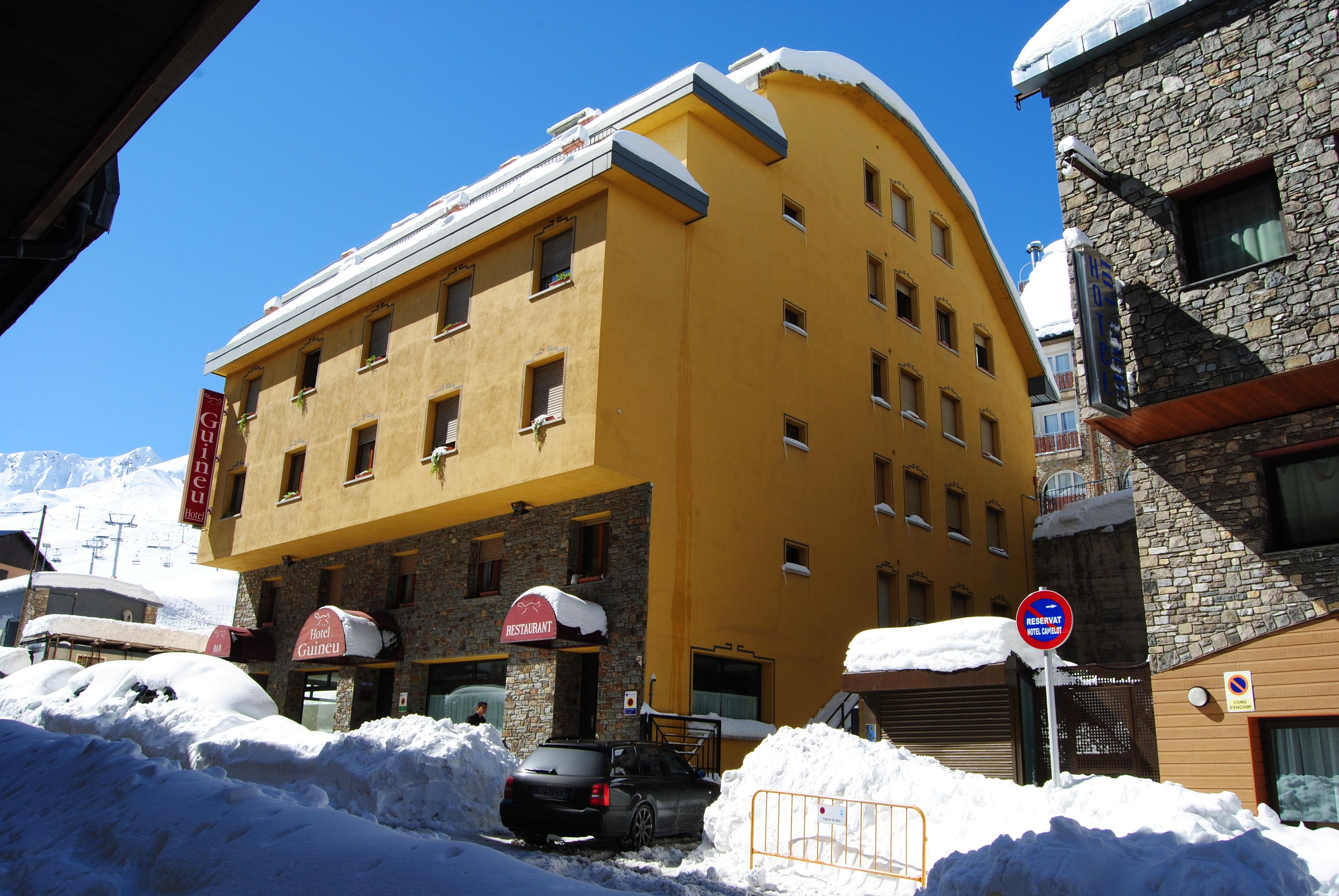 Det lille, hyggelige Hotel Guineu byder på en dejlig atmosfære og en perfekt beliggenhed i skisportsbyen Pas de la Casa. Hotellet ligger lige i hjertet af byen og med både butikker, restauranter og afterski-barer lige ved hånden. Blandt hotellets nærmeste naboer finder du også liften, som nemt og hurtigt fører dig op til Granvalira-skiområdets velpræparerede pister. På Hotel Guineu indkvarteres du i simpelt møblerede værelser, som kan rumme op til 4 personer. I hotellets restaurant serveres både morgenmad og aftensmad, som er inkluderet i prisen. Hotel Guineu anbefales til både voksne og familier.